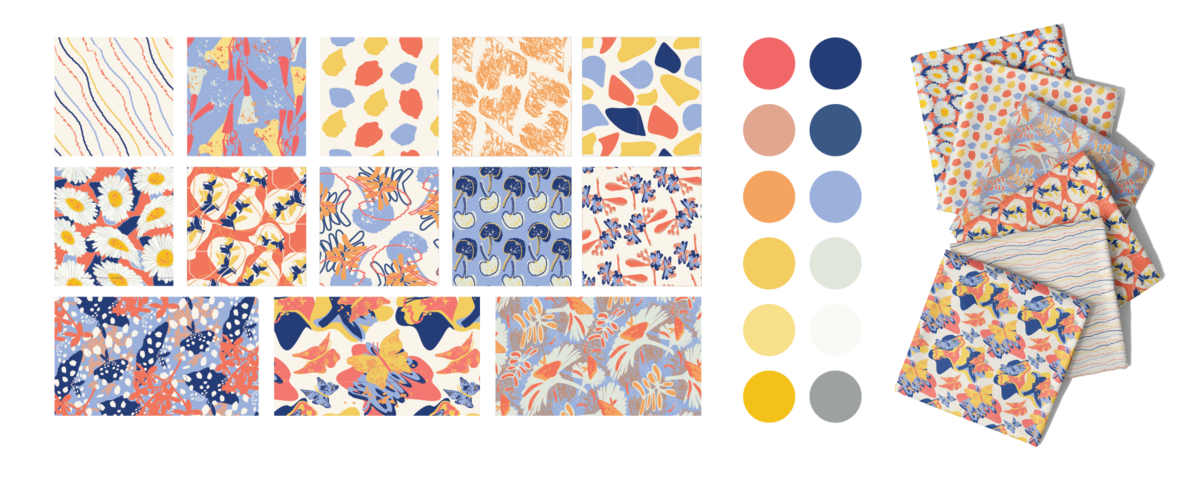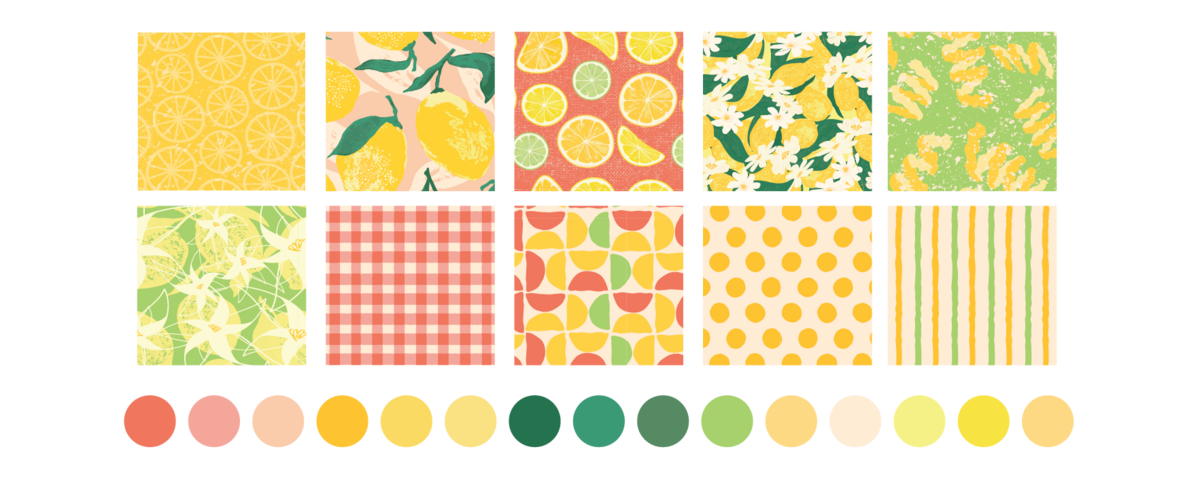 Zesty Escape reflects my love for the vibrant energy of citrus fruits. Inspired by the tangy burst of a lemon or lime, this collection captures that fresh, creative spark. With bold fruit motifs, playful swirls, and sunny colors, it brings simple joy and a sense of renewal to everyday life. Whether through kitchen textiles, decor, or summer accessories, I hope these designs inspire warmth, lightness, and endless possibilities.